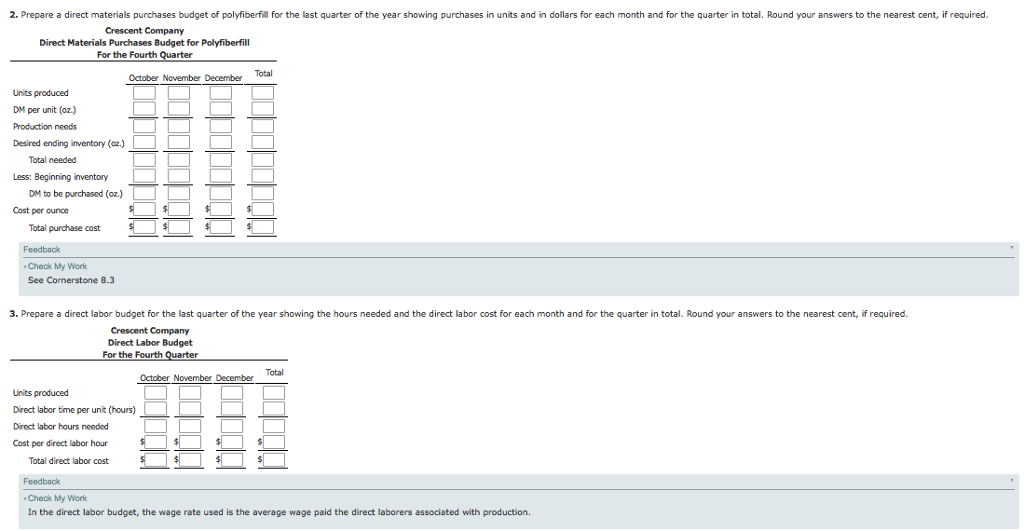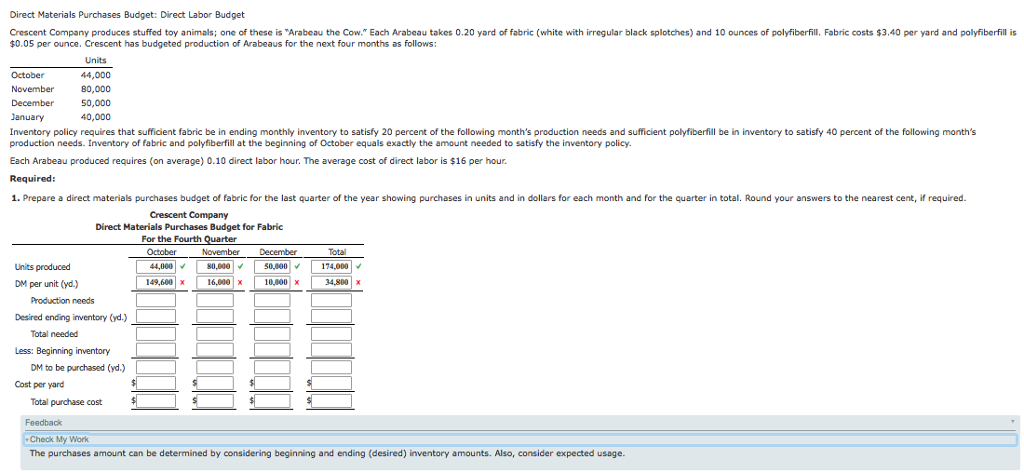 One of these is Arabeau the Cow. Direct Labor Budget Crescent Company produces stuffed toy animals. Exercise 817 Direct Materials Purchases Budget.